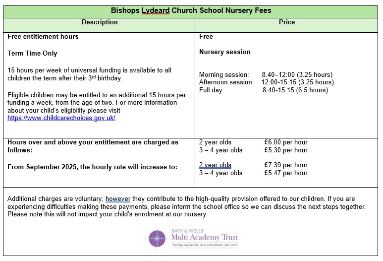 From September 2025, the hourly rate will increase to £5.47 for 3-4 year olds and £7.39 for 2 year olds.